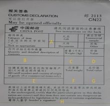5、包裝要求 1、中國郵政航空小包只能貼中國郵政格式的報關(guān)單,不能貼香港郵政報關(guān)單。 2、收件人姓名地址須用英文填寫完整; 3、中國郵政小包報關(guān)單上內(nèi)件物品、數(shù)量、重量及價值(美元USD)須由客戶填寫; 4、中國郵政小包報關(guān)單上寄件人簽名處,請客戶簽署自己的中文姓名; 5、包裝要完好,不要易破損,在包裝袋外側(cè)除地址標簽外,盡量不要帶其他無關(guān)標識。對于易碎品,最好外包裝上貼有易碎品的標志,在郵包正面的中間位置貼上地址標簽。(中國郵政小包報關(guān)單格式相見圖一)
