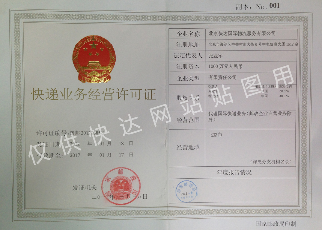 快遞業務經營許可證(正本)